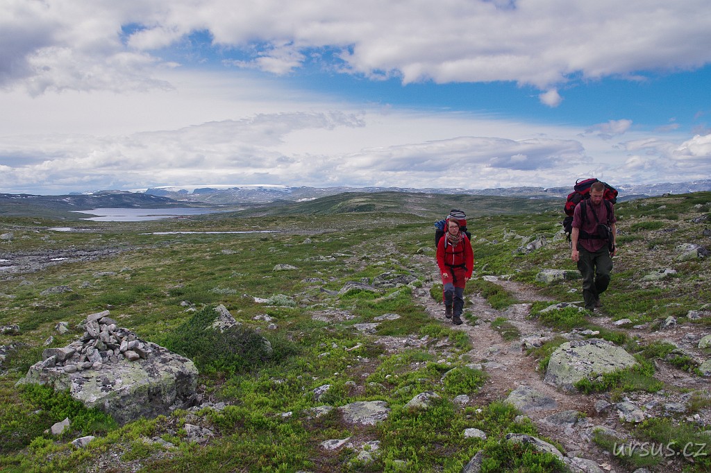 Charakter Hardangerviddy je v první fázi putování stejnorodý- kamenná pláň s oblými hřbety ubíhající na jih...