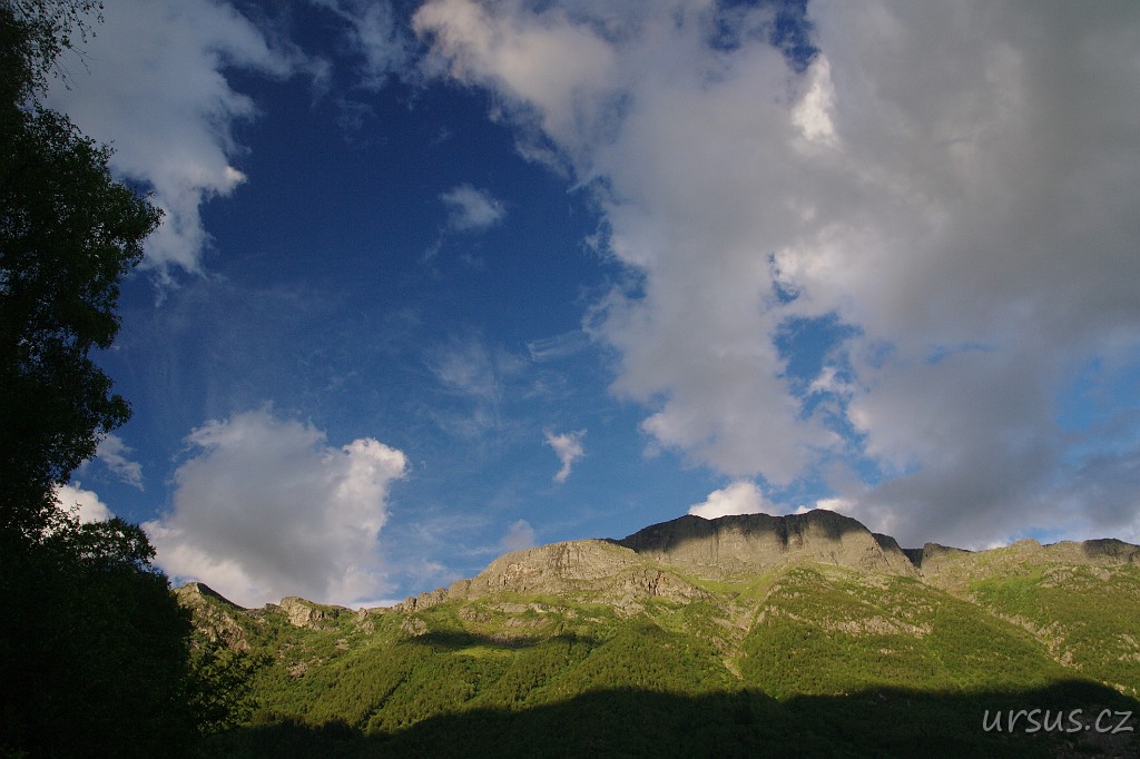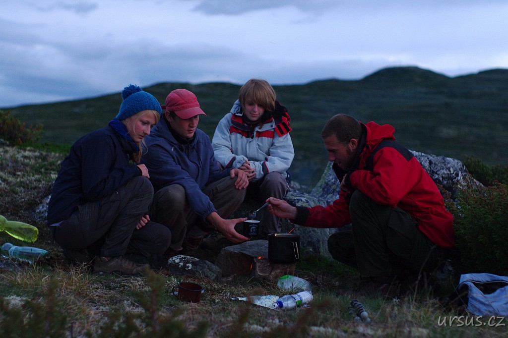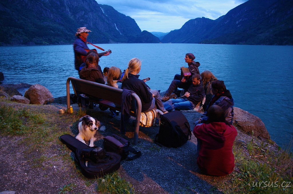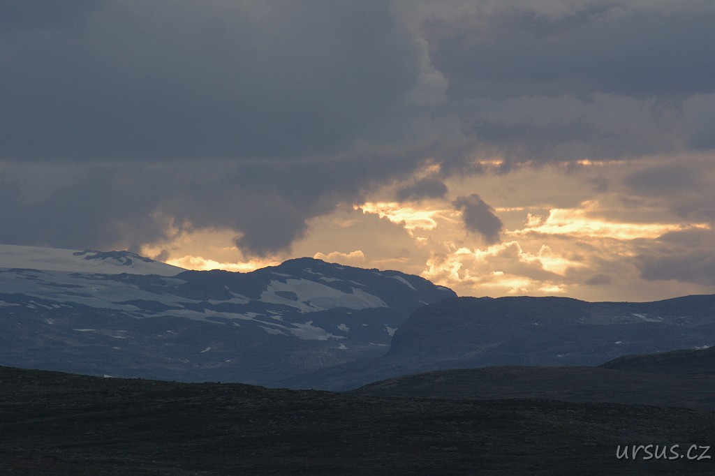 Večer z kempu u města Odda vidíme na Hardangerviddu už jen zespod.