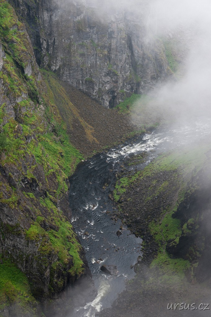 Vodopád Voringfossen padá 180 metrovým skokem z náhorní plošiny.