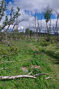 Postupně vcházíme do nízkého březového lesíka.