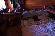 Slunce stojí ještě vysoko když u jezera nacházíme skupinku dřevěných chaloupek jako z pohádky. "Určitě budou zamčené", říkáme si. "A i kdyby náhodou nebyly, měli bychom jít dál."