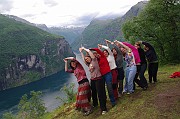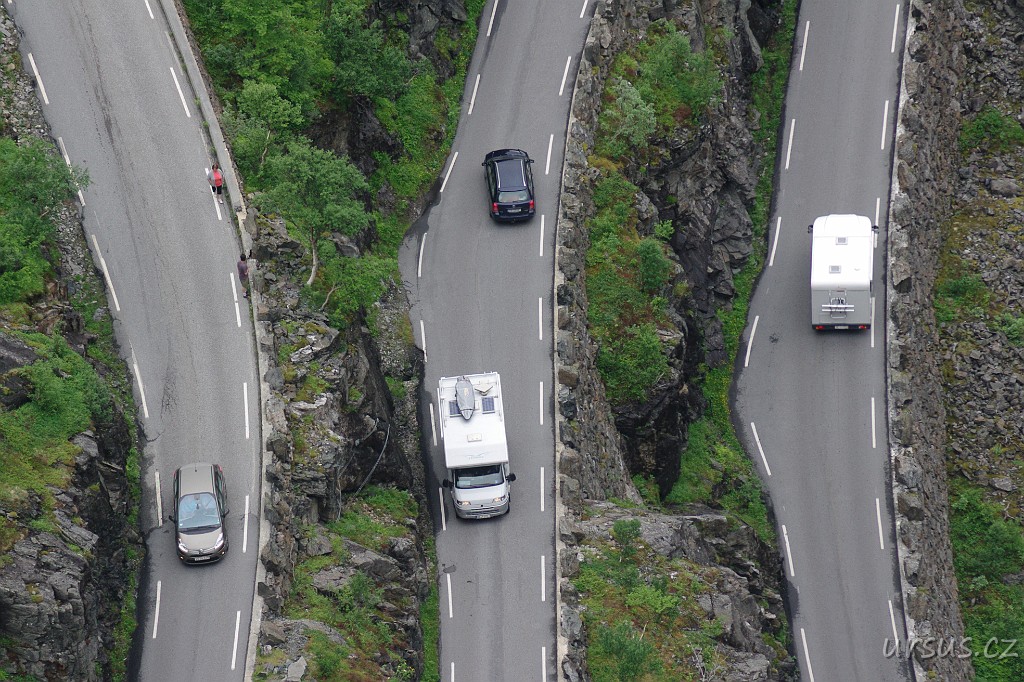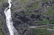 Druhý den stoupáme autobusem do průsmyku Trollstigen známou Cestou trollů. Průsmykem lidé odpradávna převáděli dobytek i zboží a v r.1936 zde byla vybudována unikátní silnice, která stoupá od Romsdalfjordu v jedenácti ostrých serpentinách do nejvyššího bodu ve výši 830 m n.m.