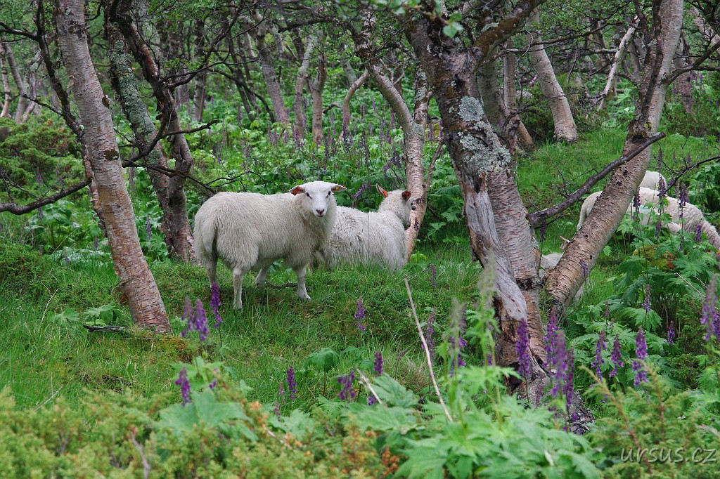Oměj šalamounek (Aconitum plicatum) a zakrslé břízy.