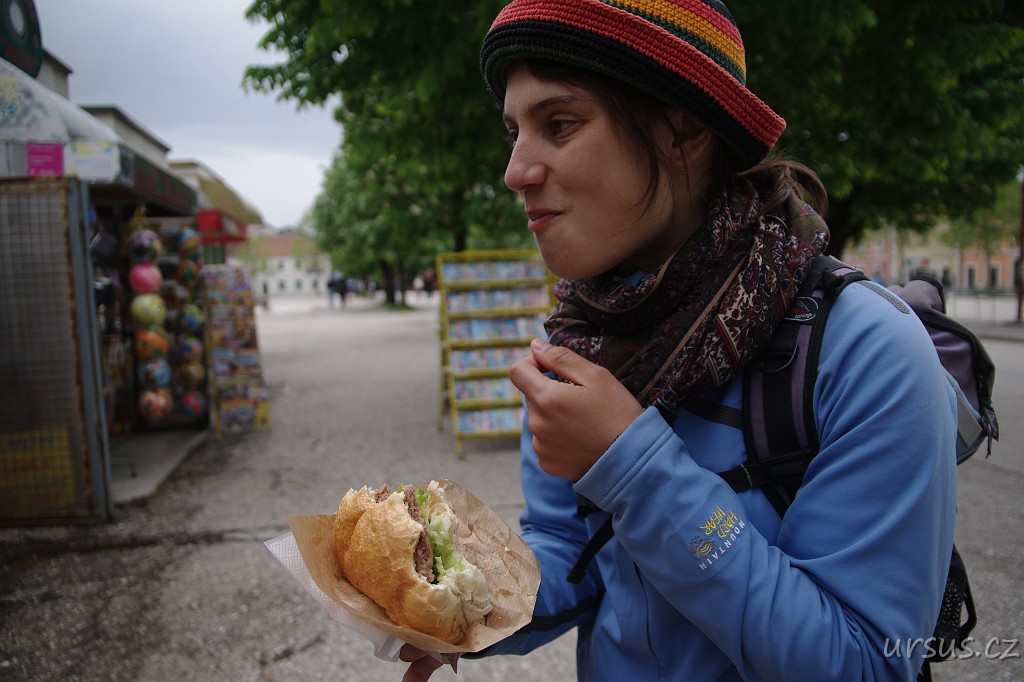 V místní fástfůdovce si dáváme čísburgr. Lublaňské gyrosy jsou sice lepší, ale alespoň jsme se najedli a žaludeční potíže se nedostavily.
