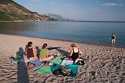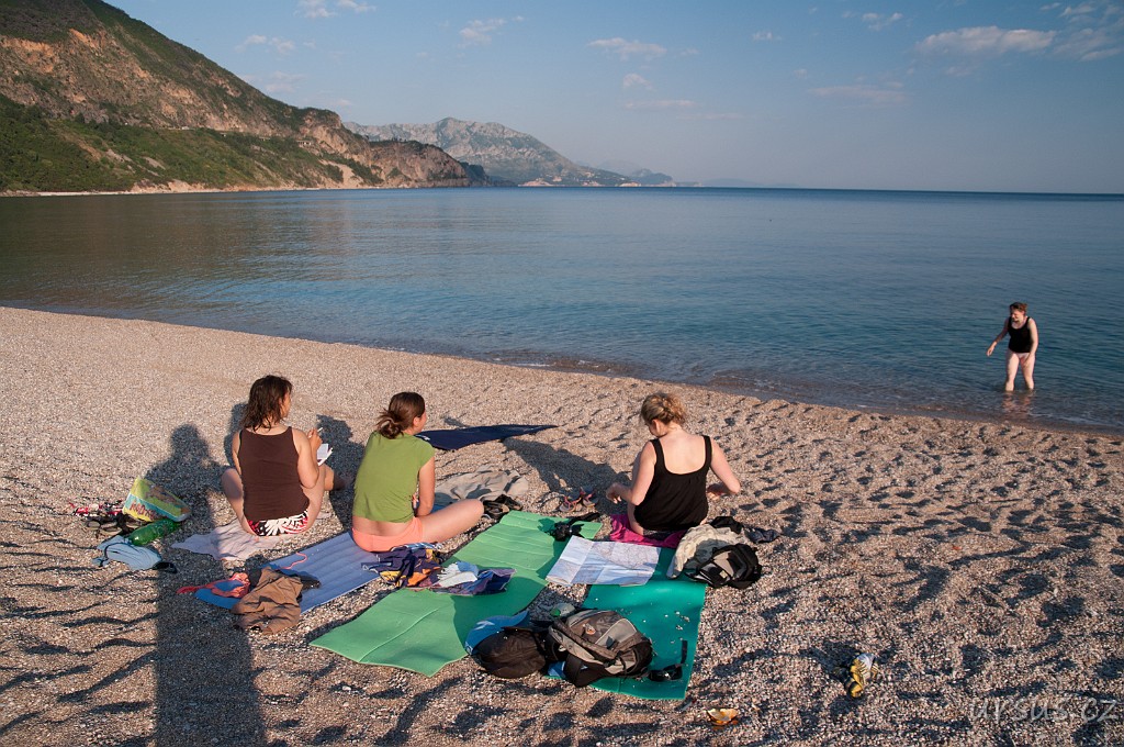 Přespáváme na pláži pod širákem a pak se naše cikánské ležení začíná pomalu ale jistě přesouvat k severu.