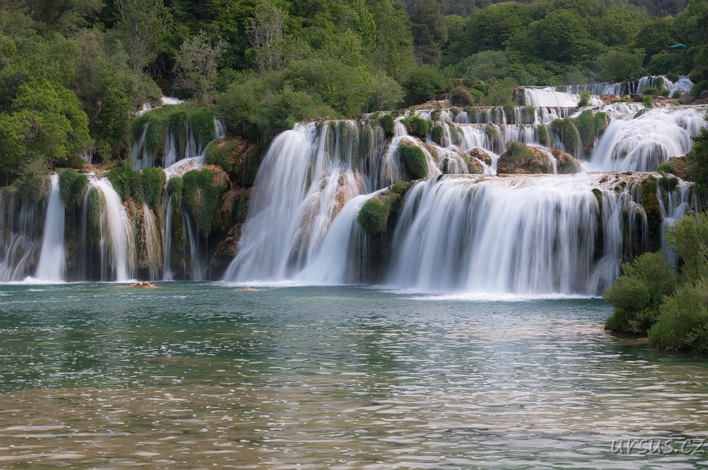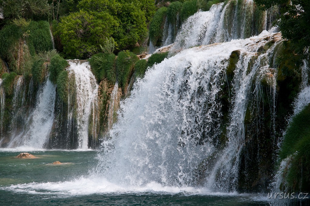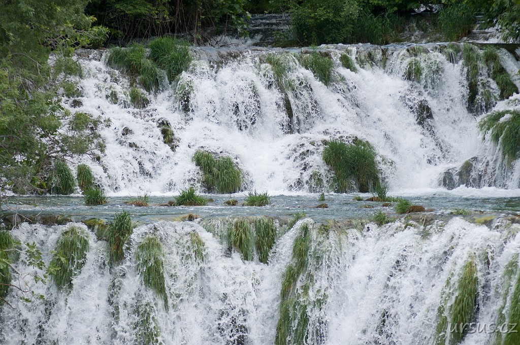 NP Krka zahrnuje soustavu jezer, peřejí, kaskád a vodopádů z nichž nejhezčí je 20m vysoký Skardinský buk.