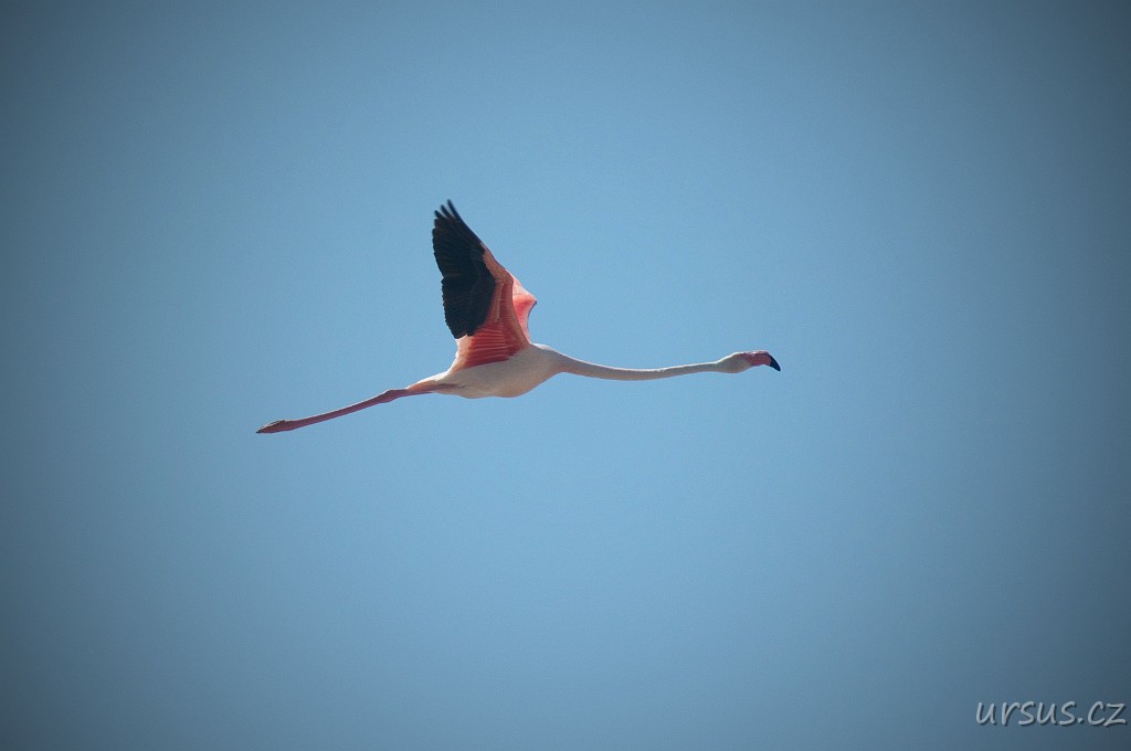 Plameňák růžový (Phoenicopterus roseus) je pták vysoký 120 - 140 cm, dosahuje hmotnosti 2100-4100 g. Svá hnízda si staví z bahna a živí se převážně planktonem, který cedí z mořské vody pomocí zobáku, skoro jako kytovci.