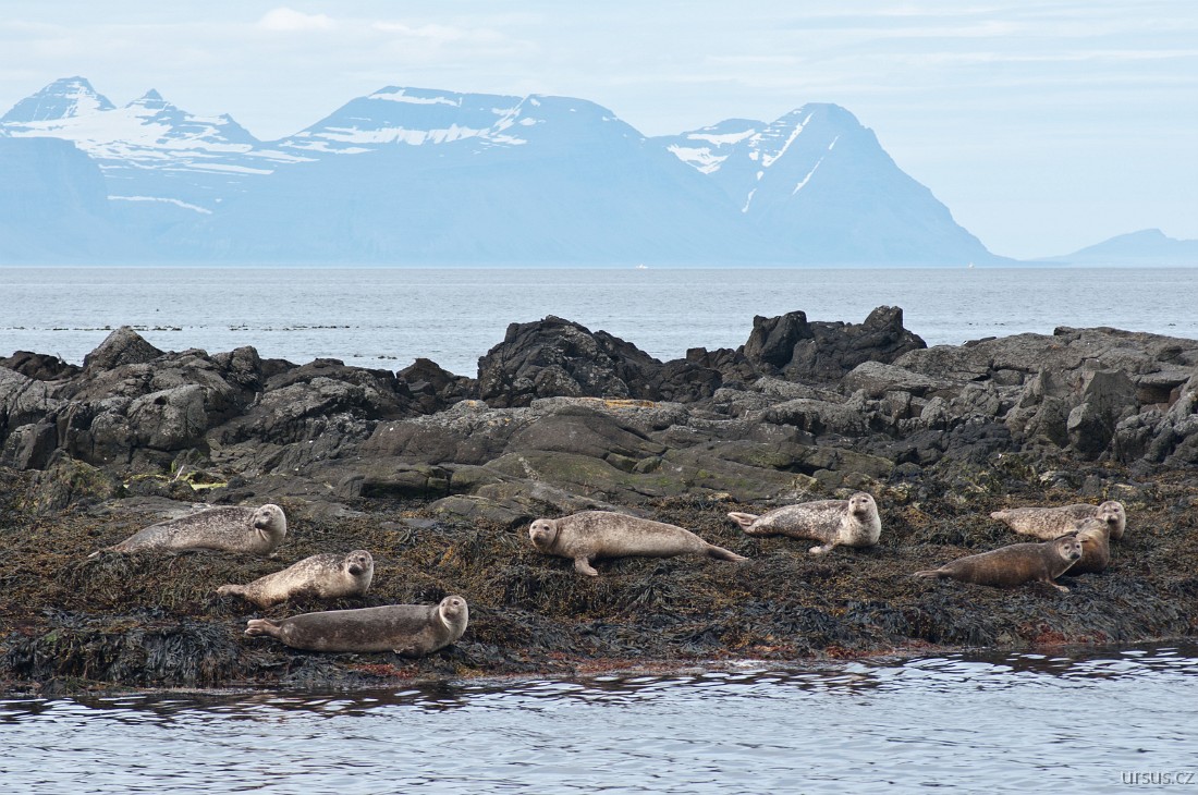 Kolonie zevláckých tuleňů na poloostově Vatnsnes.