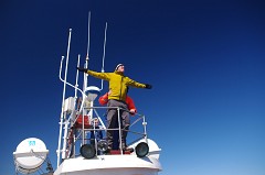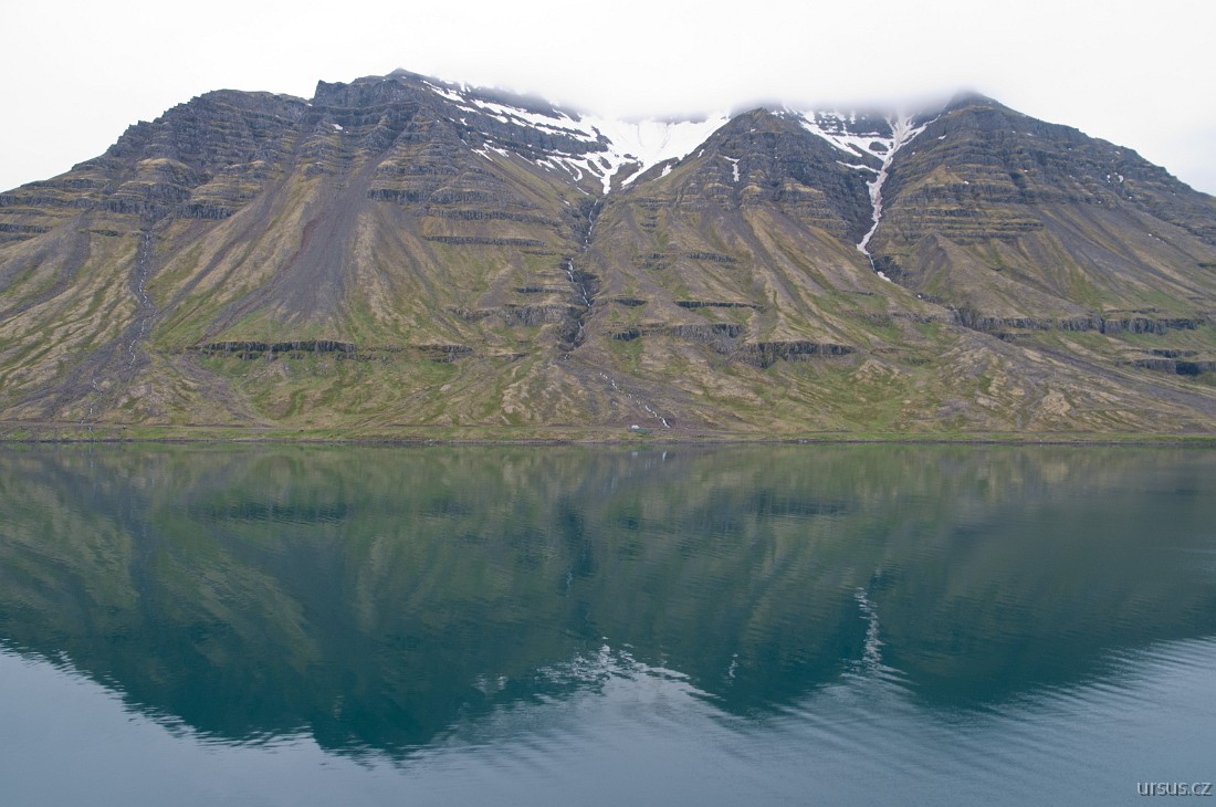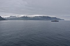 Po 18 hodinách plavby z Faerských ostrovů připlouváme k břehům Země severu. Kam oko dohlédne, všude temné, ledové vrcholky hor.