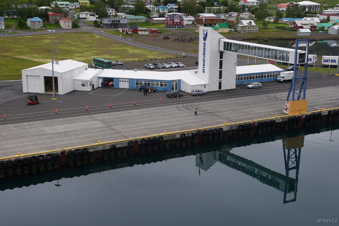 V přístavu Seyðisfjörður už stepují celníci a psi. Nejchoulostivější potraviny (uzeniny,...) jsme si vzali do příručních batohů, celníci však můžou prohrabat autobus a zabavit nám naše drahocenné zásoby. Naštěstí vše dobře dopadlo, celníci si vzali na paškál kolegy z Veolie a my jsme všechen kontraband dostali na Island. Zásoby nám stačily pokrýt většinu Islandského pobytu!