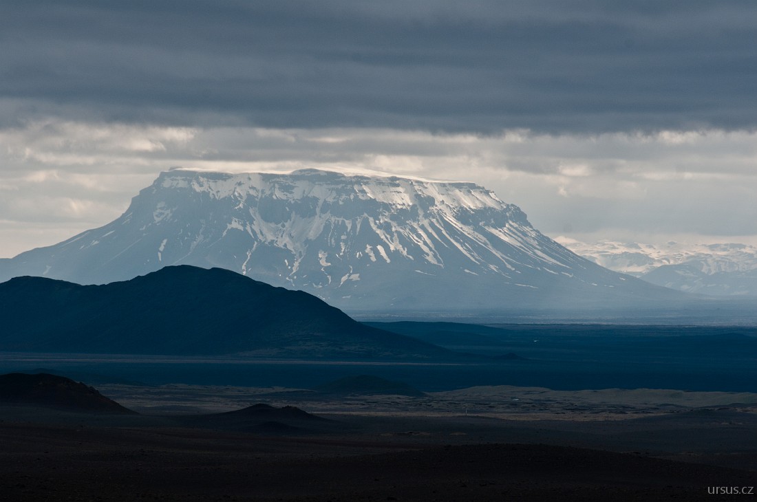 Nad touto nehostinnou pustinou vypína se 1682m vysoká sopka Herðubreið (typ tuya, stolová sopka).