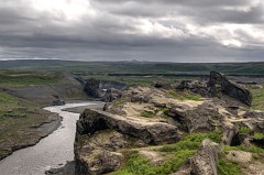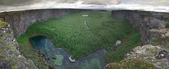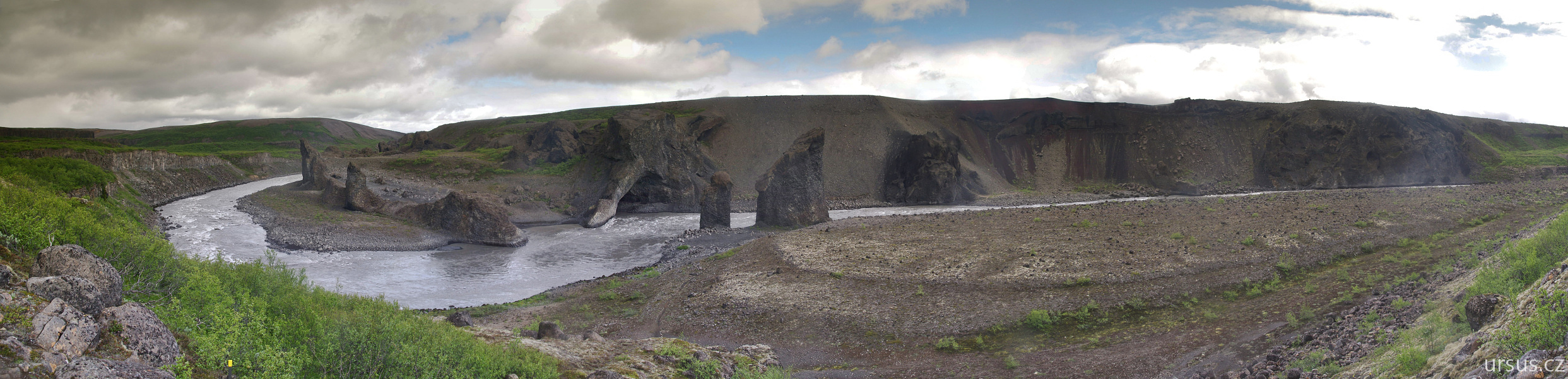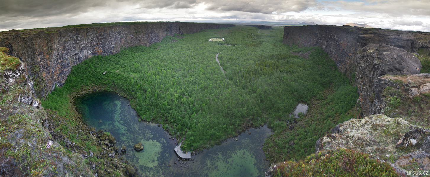 ...najednou se před námi rozevírá mohutný Asbyrgský kaňon. Za jeho vznik můžou taktéž povodně. Neméně velkou pozoruhodností je fotbalové hřiště uprostřed této pustiny (ve středu kaňonu).
