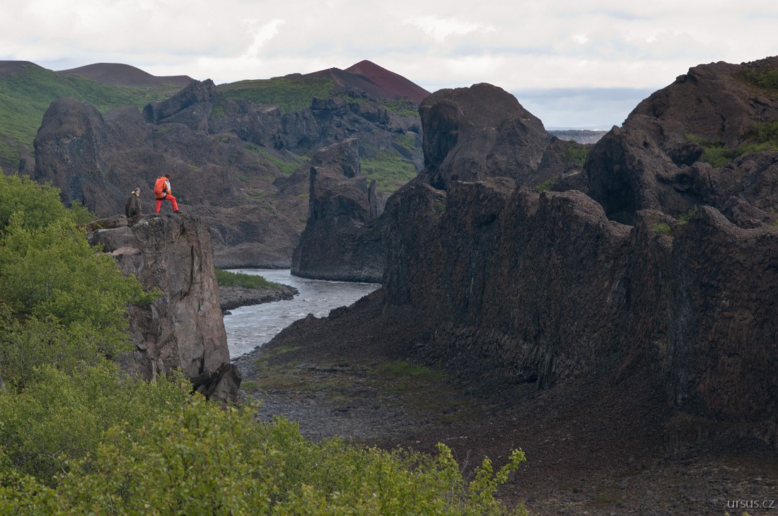 Druhý den vyrážíme na 20km trek podél kaňonu. Startujeme z kempu Vesturdalur a cíl je v našem kempu Asbyrgi.