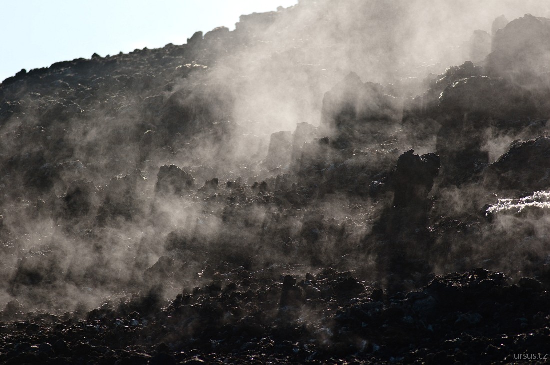 Téměř 20km se táhne černé lávové pole, pusté, dýmající a nehostinné.