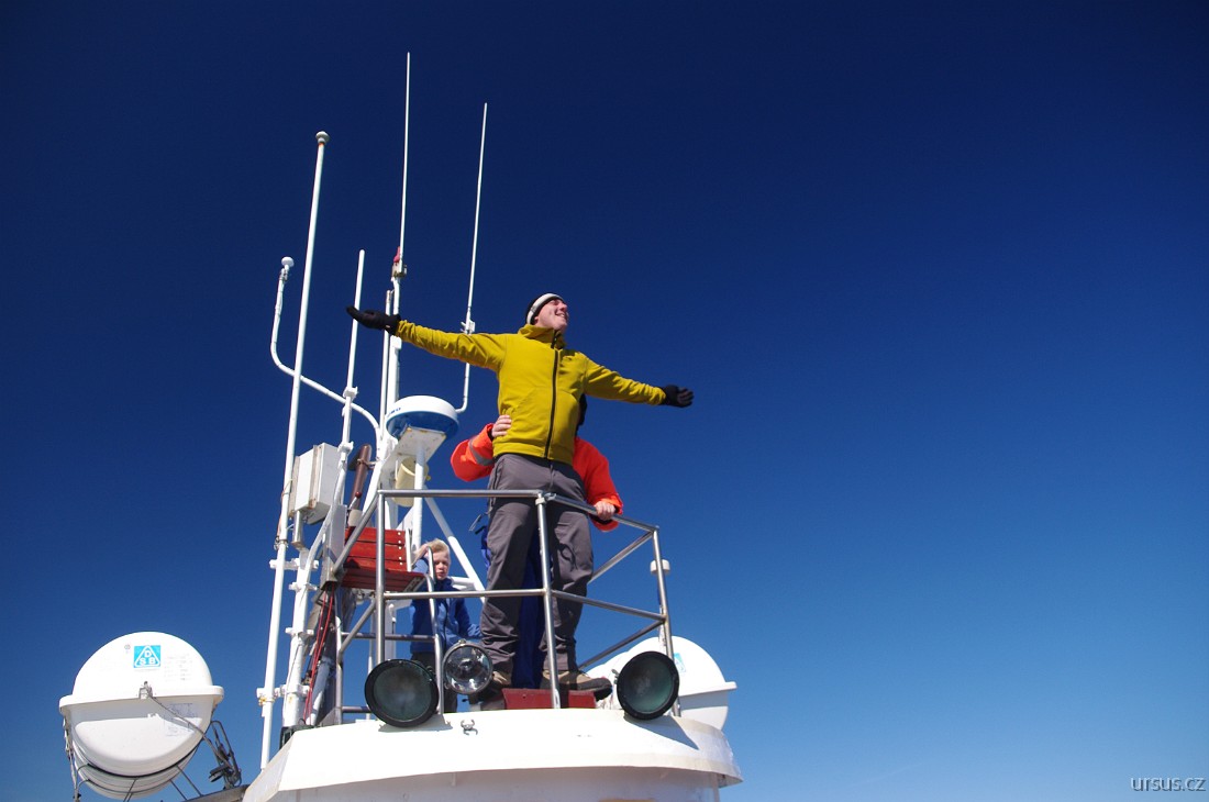 Po chvíli se z velitelského můstku ozývá: "plejtvák obrovský na 9 hodině"...