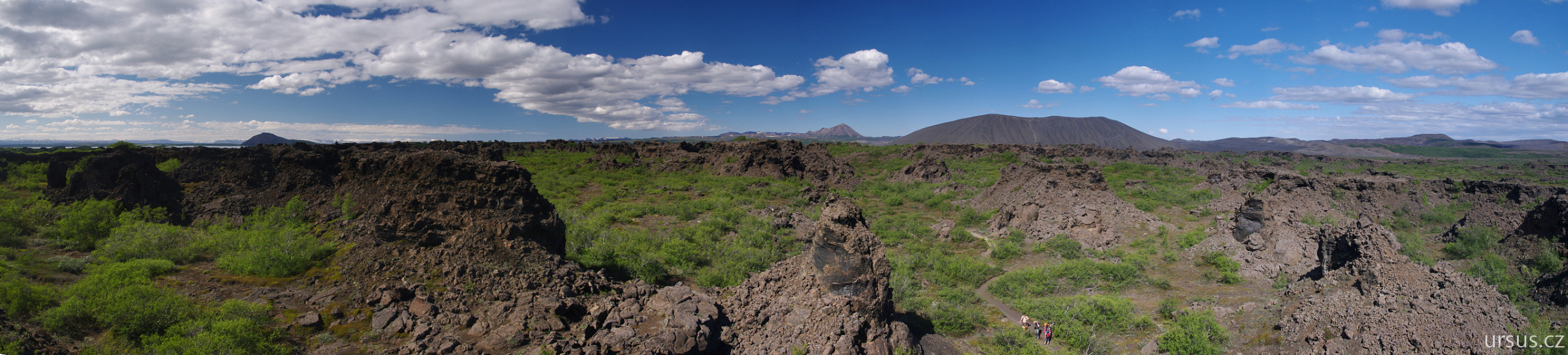 Vracíme se k jezeru Mývatn. Sopečné skalní město Dimmuborgir ("černé město").