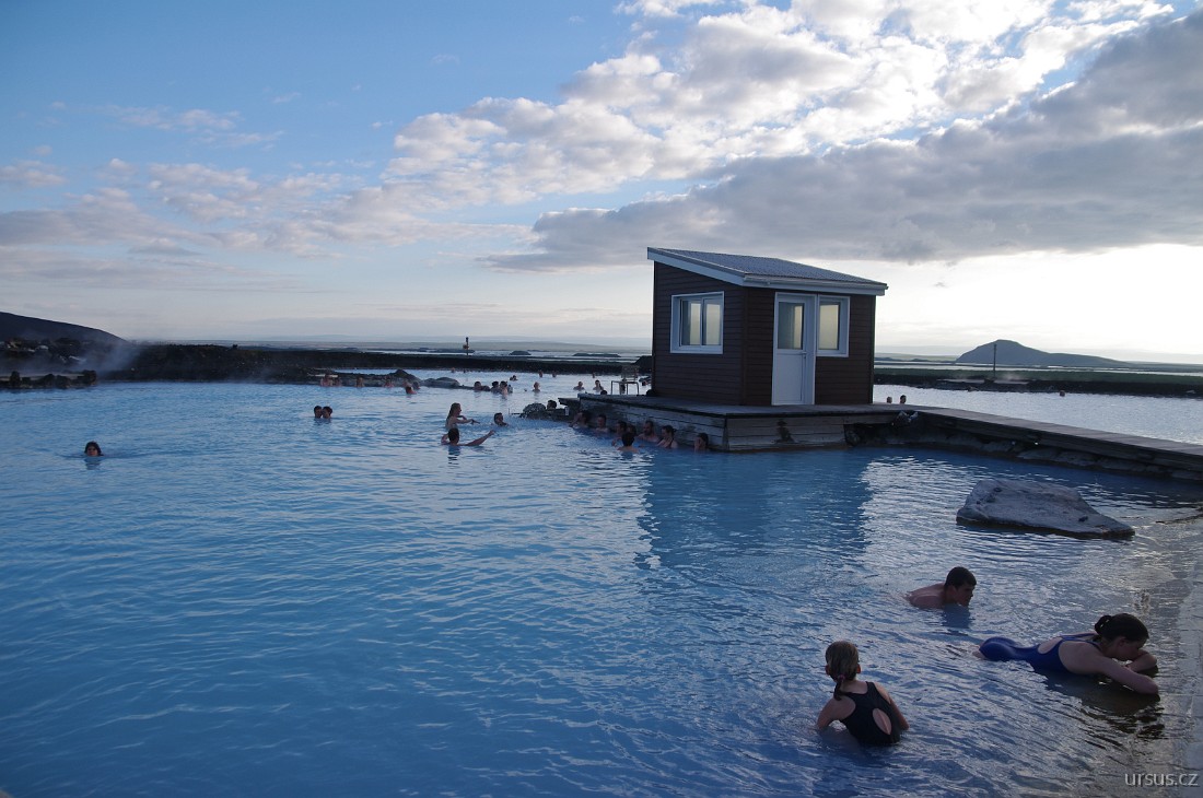 Přírodní lázně Mývatn. Voda z hlouky 2500m o teplotě 35-45°C s léčivými účinky, které jsem poznal na vlastní kůži, když se mi zázračně vyléčilo zranění rtu.