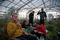 My jsme jeden opuštěný skleník obsadili, jako vítaný úkryt před deštěm a větrem, a jali se debužírovat.