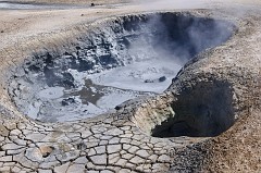 Krafla je vulkanický komplex s 10 km širokou kalderou. To znamená, že láva zde nevytéká z jednoho místa, ale z dlouhé pukliny v zemi.