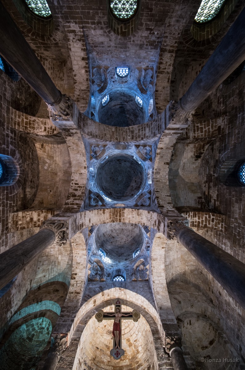34 Šperkem na architektuře normanské kultury je kaple Cappella Palatina v Královském paláci. Normanskou stavbu doplnili nejzručnější umělci Byzance nádhernými mozaikami a zářnost kaple posílili arabští mistři nevšední intarzí stropu kombinací ebenového dřeva, slonoviny a sintru, tedy krápníků!