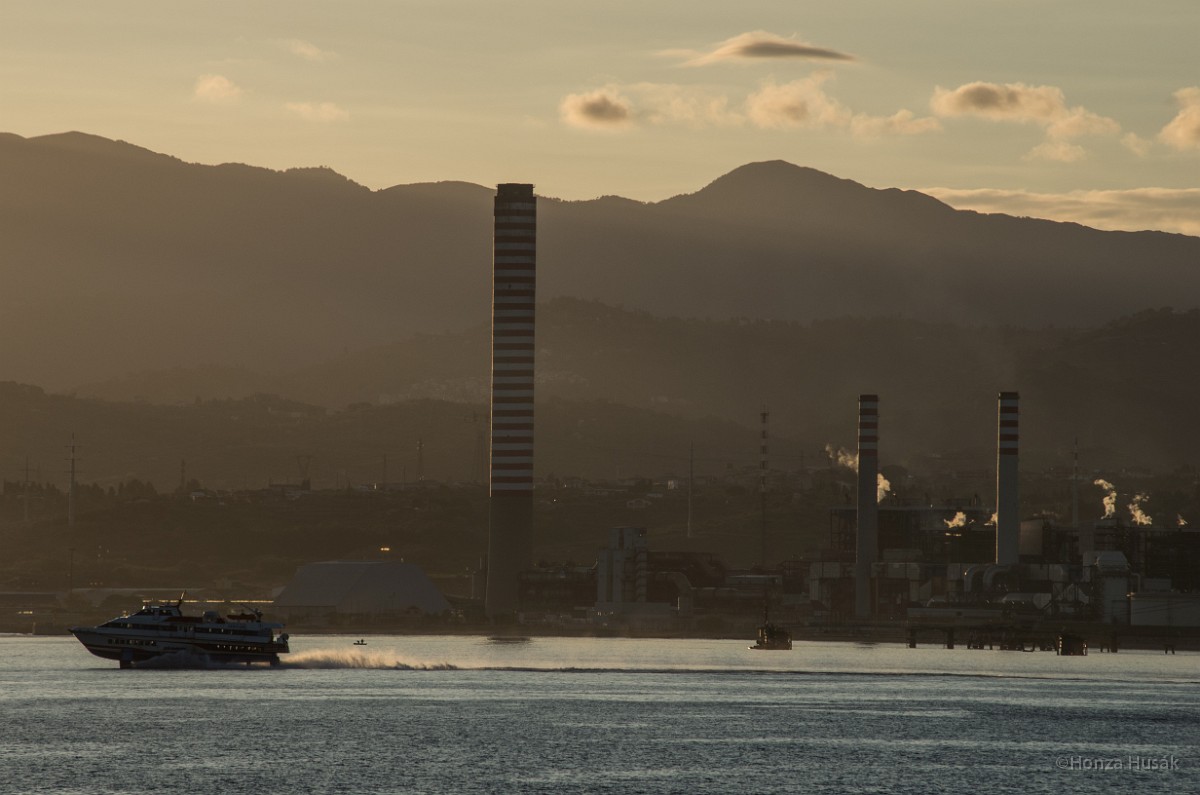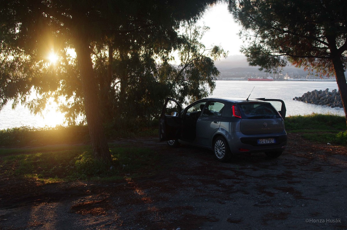 54 Navečer nasedáme zpět do trajektu a opouštíme Stromboli. Na ostrově by stálo za to strávit delší dobu, my však máme omezený čas a tak nás po 3 hodinách plavby znova vítá rafinerie ve městě Milazzo a samozřejmě náš dočasný pojízdný domov-auto.