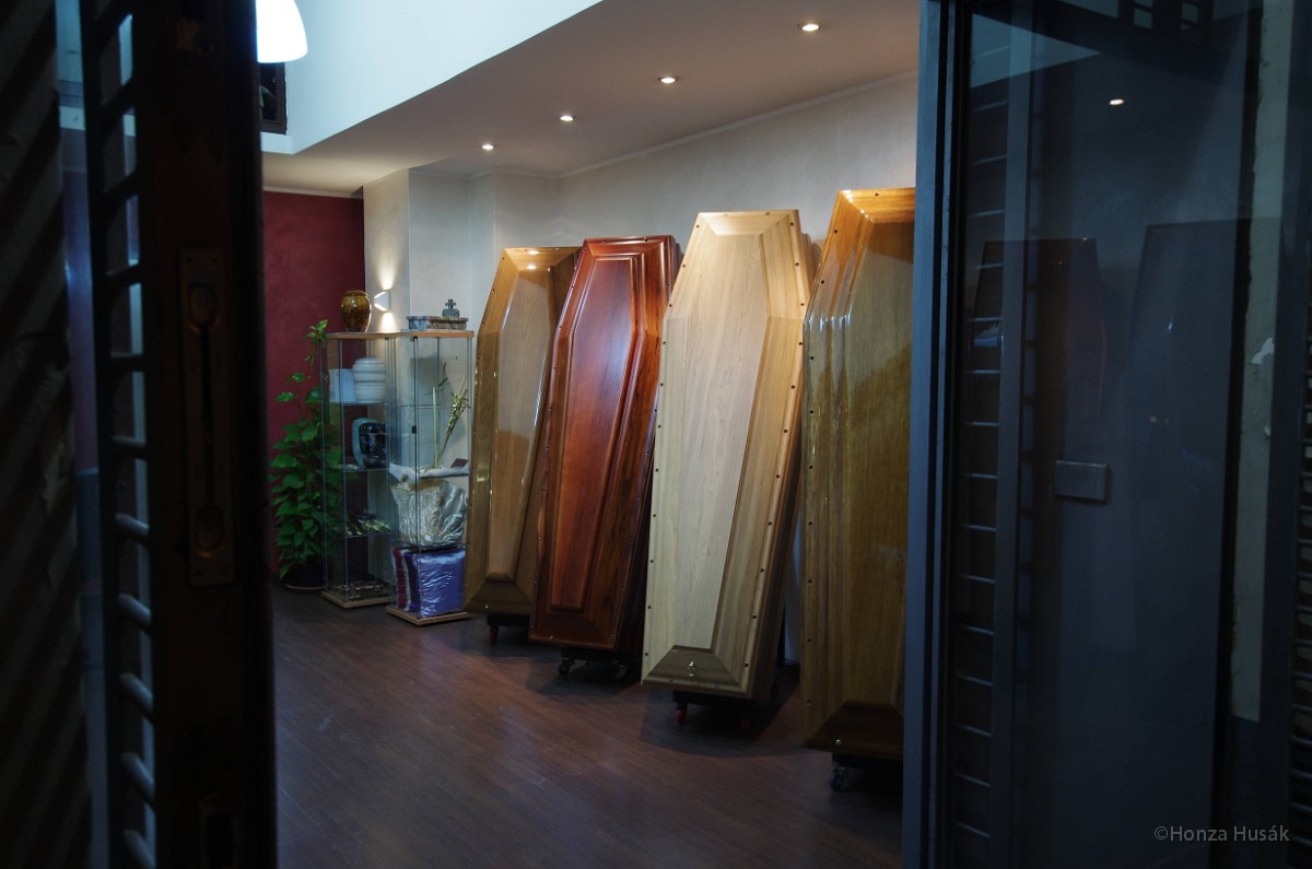 68 Zajímavé bylo, že hned za rohem "ulice rakváren" se prodávaly samé svatební šaty. Inu, život a smrt zde jde ruku v ruce.