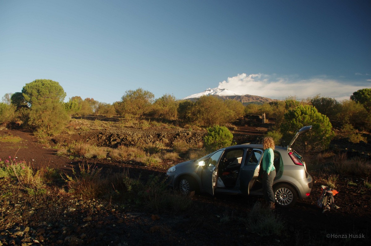 70 Z Catanie odjíždíme s rozporuplnými, ale silnými zážitky. Na příští den hlásí pěkné počasí a tak se vydáváme vzhůru táhlým svahem Etny.