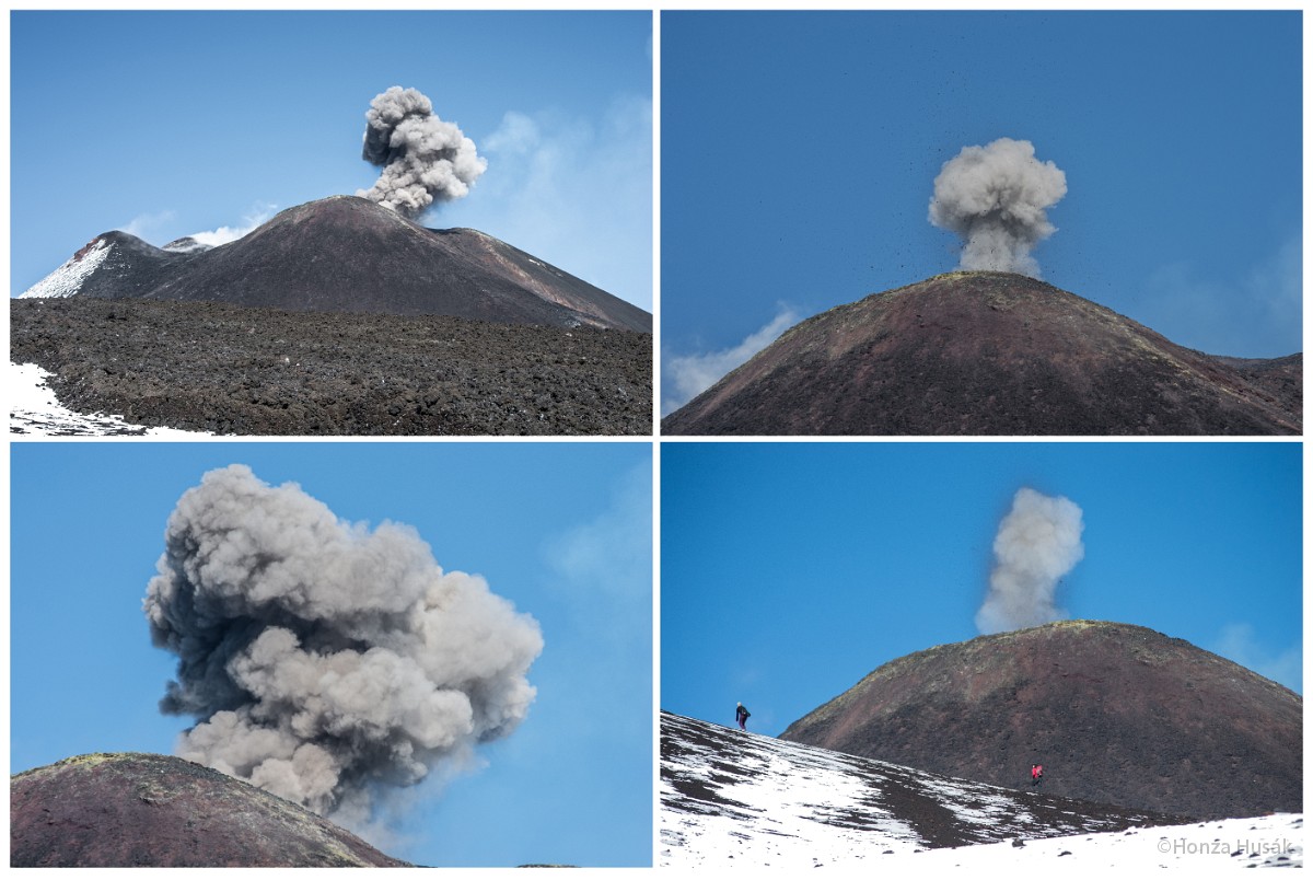80 Od horní stanice lanovky jezdí turistický minibus až k Torre del Filosofo - vyhlídkovému místu na hlavní vrcholy. My však jdeme po svých - vždyť i blízké okolí Etny je svým charakterem jedinečné! A Etna je v dobré formě a každých pár minut vysílá k nebi oblaky sopečného prachu.