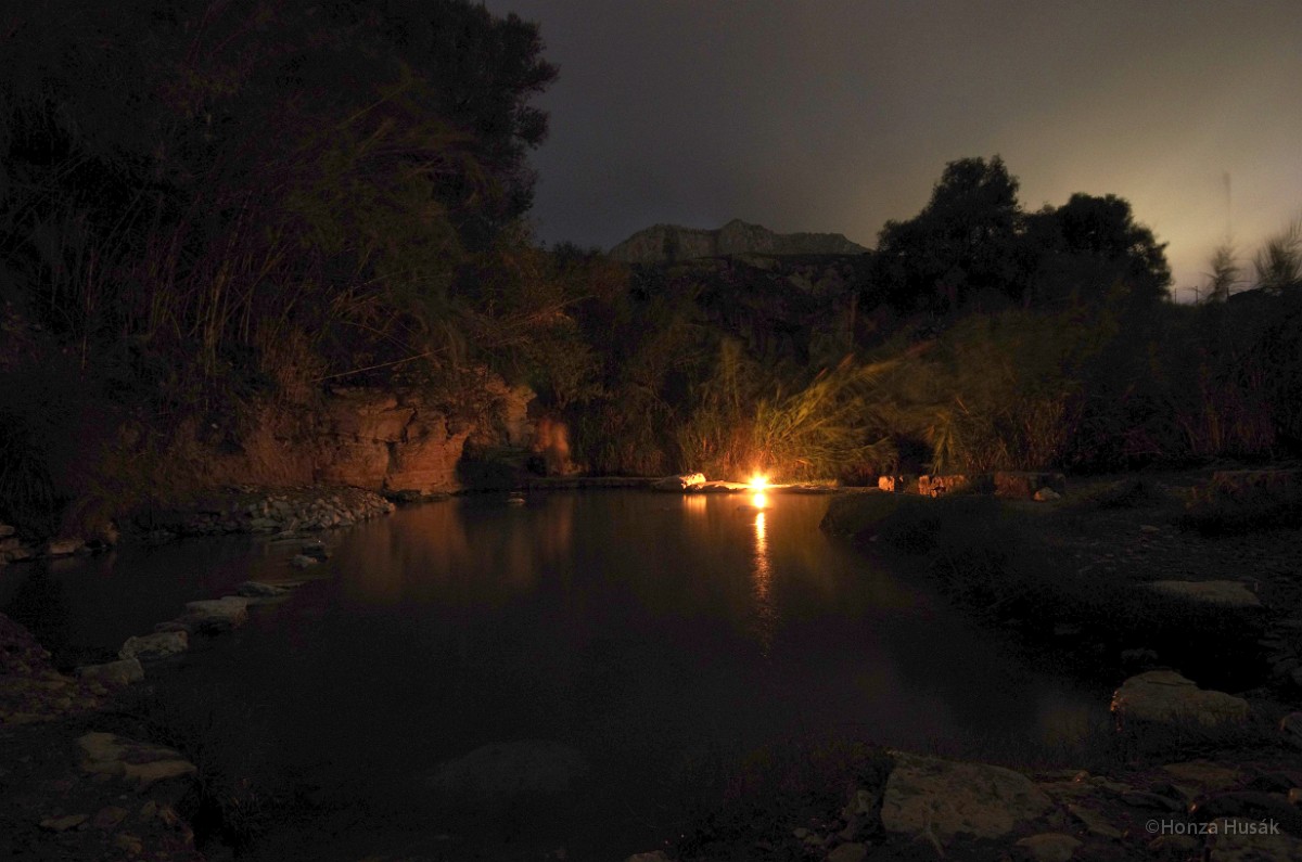 120 Na doporučení naší sicilské kamarádky Allesii vyhledáváme kousek od Segesty přírodní lázně s horkou termální vodou. Místo bylo skryto kousek od placeného aquaparku a evidentně o něm věděli jen místní. Po 2 hodinách čvachtání v 38°C horké vodě a debužírování zakoupeného jídla nás vyhání bouřka.