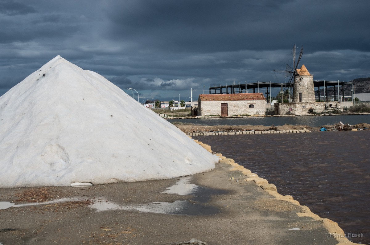 3 Město Trapani je známé - kromě rybářství a letiště - také rozlehlými slanisky, kde se těží mořská sůl.