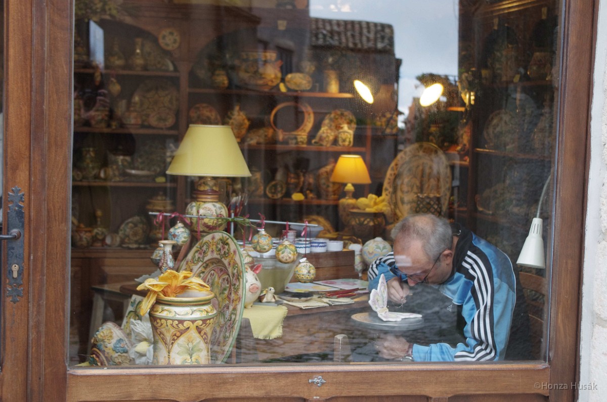 10 K Sicílii neodmyslitelně patří i zdejší zdobená keramika, jejíž tvorbu jsme měli možnost sledovat v jedné uličce.