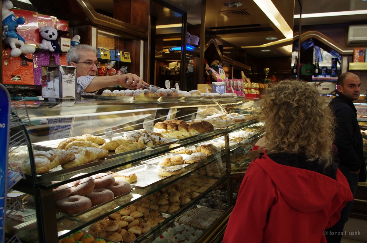 20 V pekárně si vybíráme z nepřeberné nabídky pečiva- arancino, tavola calda či cannoli. A k tomu samozřejmě vynikající sicilské cappuccino!