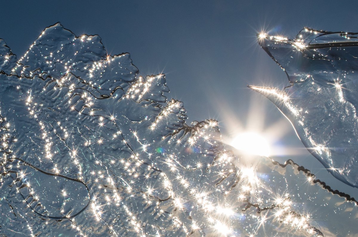 4 Malátné zimní Slunce již nemá sílu led roztavit. Přesto svým jasem rozzáří ledové krystalky tisíci malými slunci. Mimochodem, najdete v ledu delfína/draka?