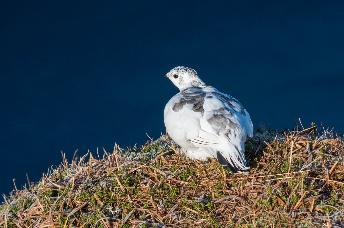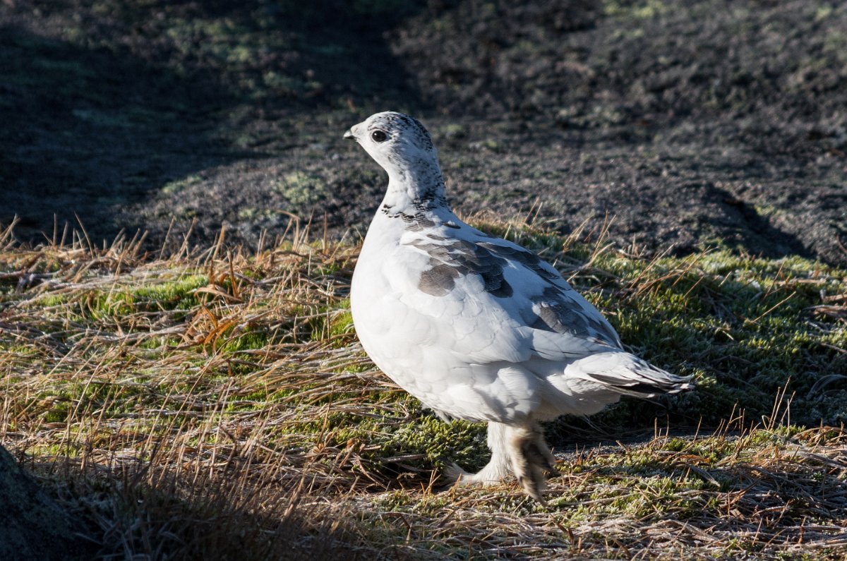 8 O pár set metrů výše se pak před větrem schovává bíle zbarvený bělokur horský (Lagopus muta),