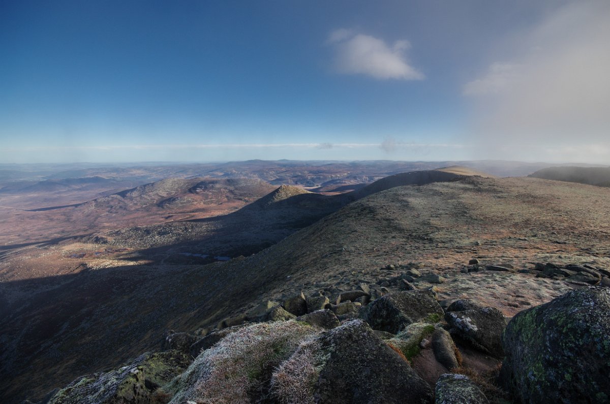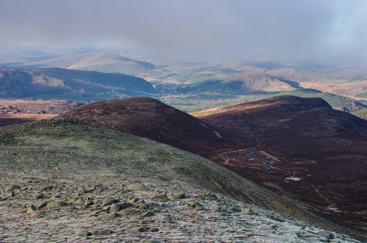 12 Na severním horizontu se objevují kamenné temena kopců národního parku Cairngorms - Ben Avon a Beinn a´Bhuird.
