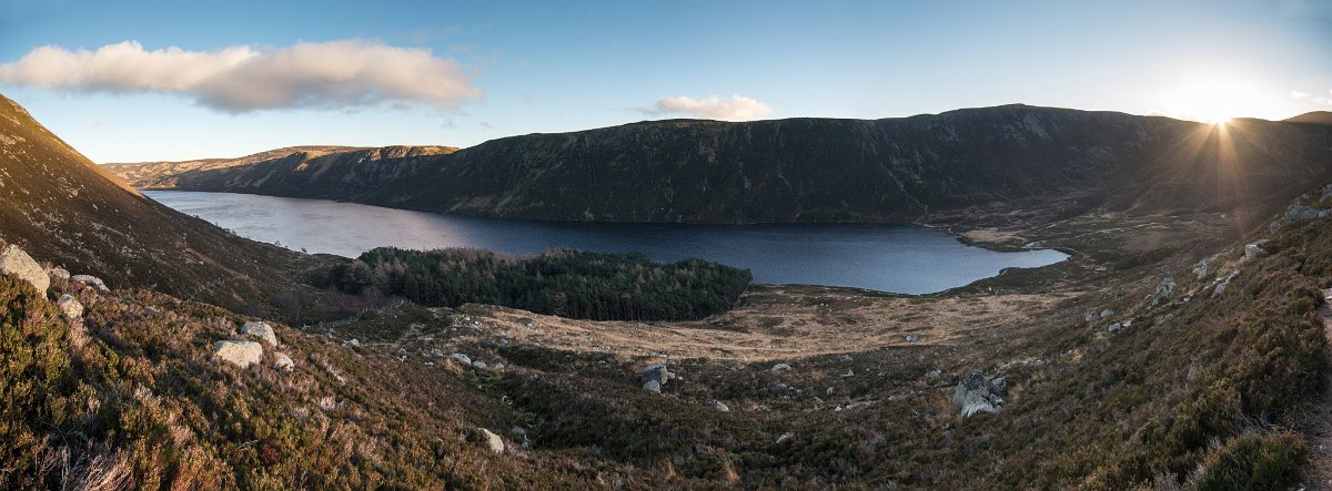 36 Jezero Loch Muick je největším jezerem Aberdeenshiru a v podzimním západu Slunce je opravdu kouzelné.