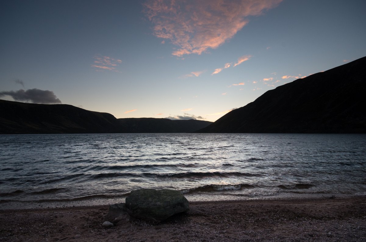 2 Ještě než se rozední, vyrážíme z parkoviště od jezera Loch Muick do skalnatých výšin.