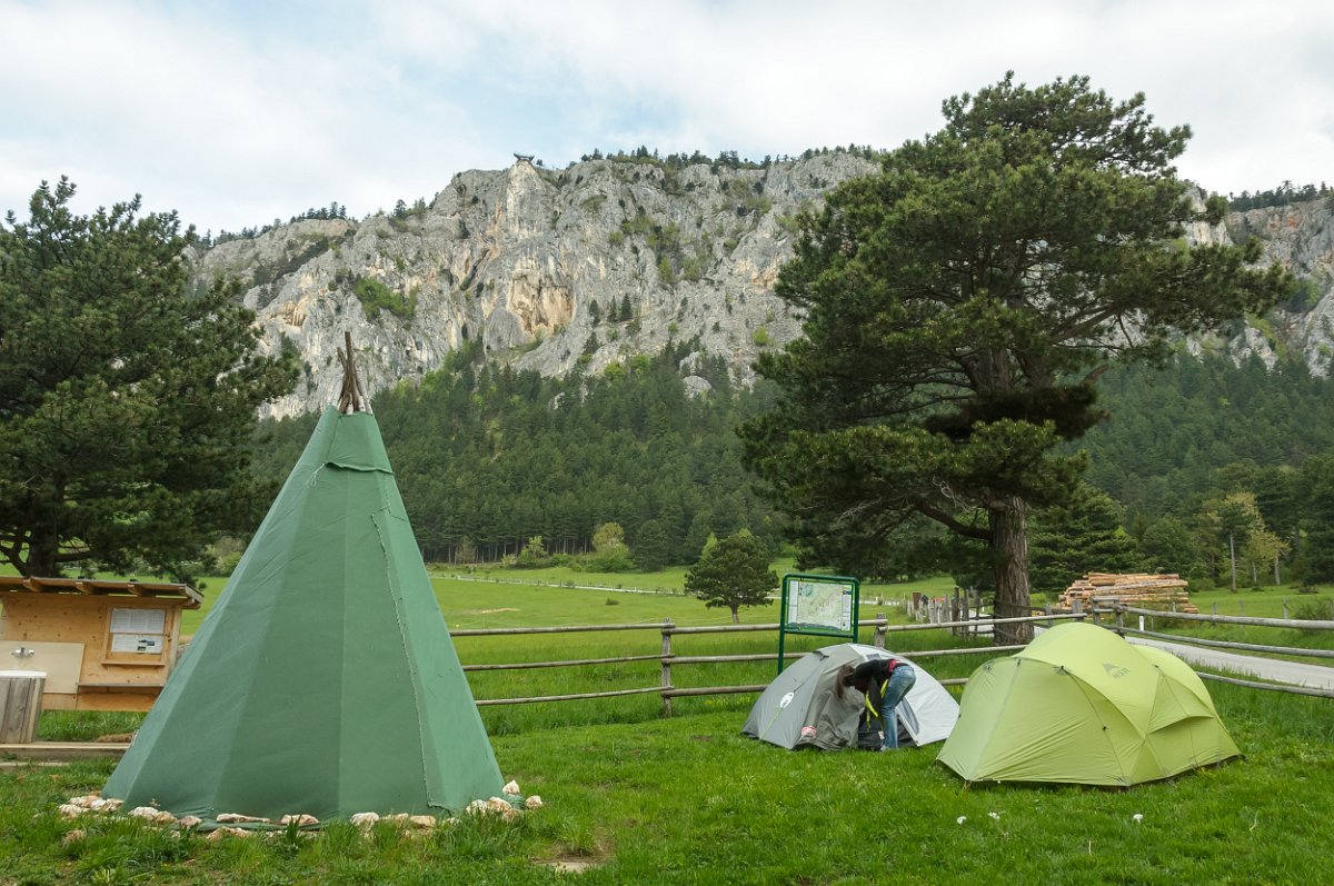 2 Přímo pod skalním bradlem je malinký, ale velmi příjemný kemp se vším co člověk potřebuje. V teepeečku je kupříkladu sprcha s teplou vodou:)