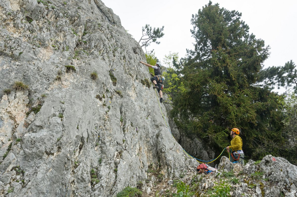 25 Pár desítek metrů pod skywalkem u sestupové cesty je sportovní sektor ÖTK Klettergarten. Tady ještě vylezeme pár cest a pak už mažeme dolů do kempu.