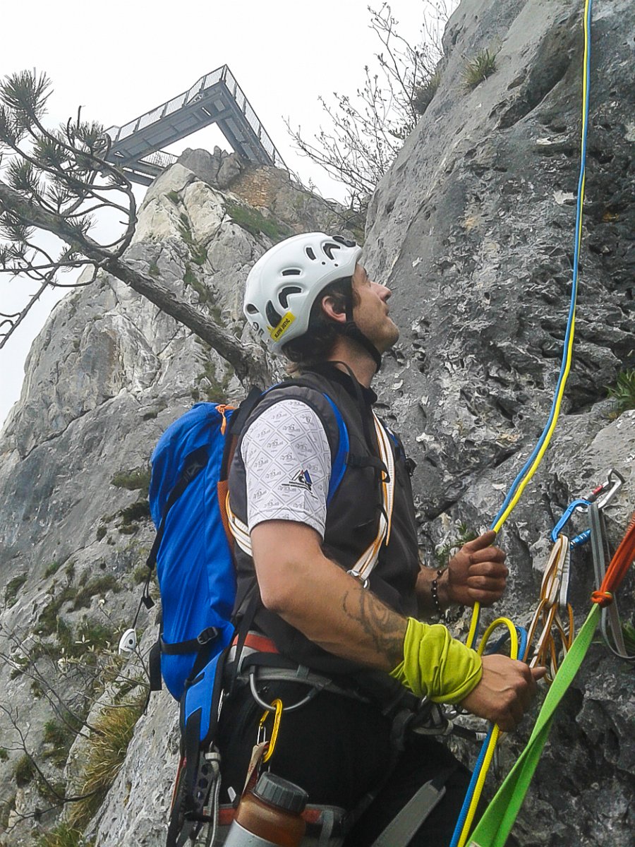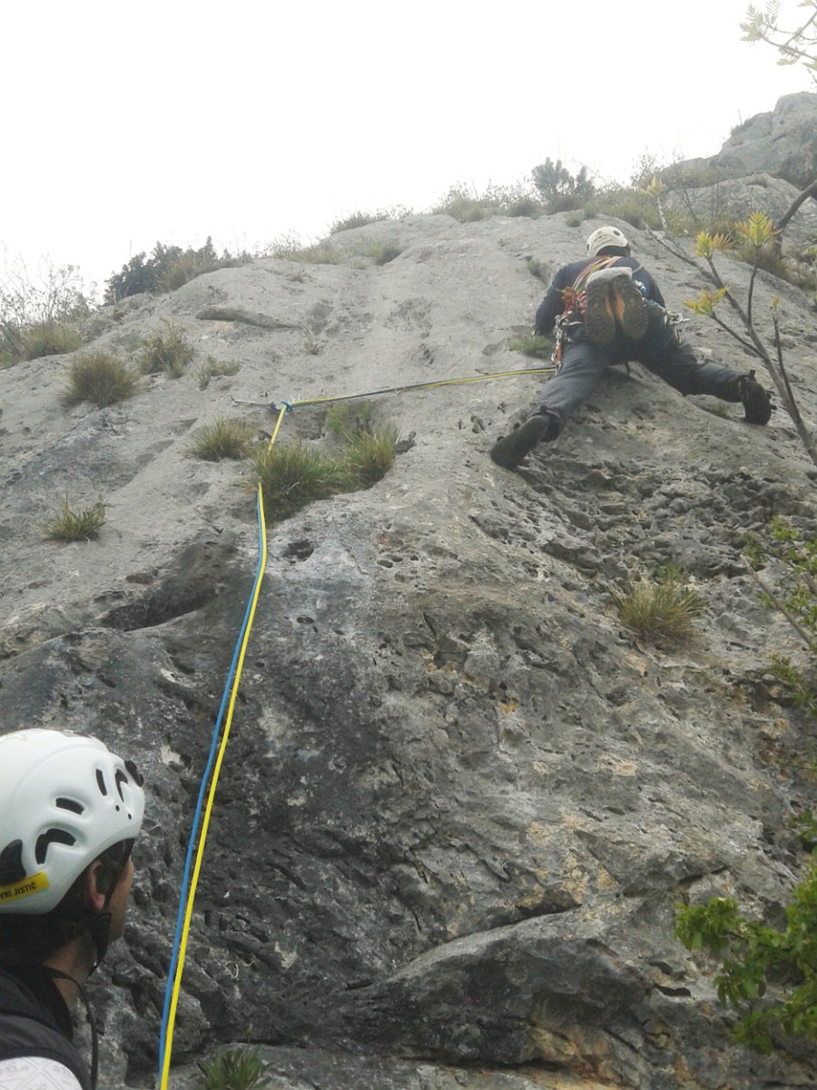 45 Miguel na štandu.Nad ním už se lehké lezení mění v lezení regulérní.