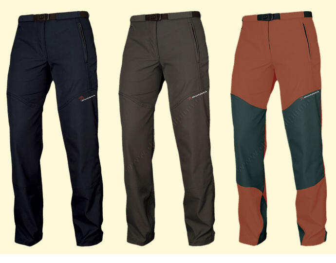 Spodní okraj nohavic je regulovatelný díky suchému zipu umístěnému na vnější straně. Kalhoty jsou opatřeny 4 kapsami – 2 přední zipové kapsy, jedna stehenní zipová kapsa (na pravé straně) a jedna zadní kapsa zajištěná na suchý zip (taktéž na pravé straně). Kapsy jsou dostatečně velké a díky zapínání na zip také bezpečné. Se suchým zipem u zadní kapsy jsem zatím nezaznamenala žádný problém s jeho rozepínáním. Firma Directalpine nabízí model Patrol Lady ve 3 barevných provedeních: černá, tmavě šedá a cihlová/tmavě šedá.