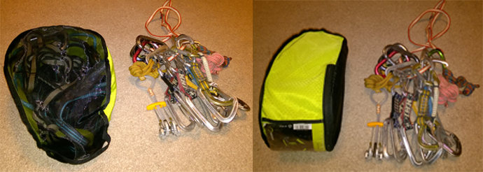 Ještě složitější je použití zadního poutka na haul bag, nebo na cokoli, co za sebou chcete tahat. Poutko je příliš těsné a jednou rukou je problém do něj něco cvaknout, zvlášť když na něj člověk logicky nevidí. Tak si buď musíte pomoct druhou rukou, což je při lezení často dosti problematické nebo musíte poprosit o pomoc parťáka.