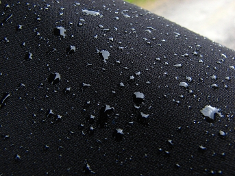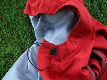 Pohled na funkčnost membrány Trinity. Vpravo je detail jednoduchého stahování kapuce.