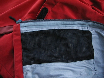 Vnitřní síťová kapsa (vlevo) a stahování límce (vpravo). Je opět vyřešeno jednoduchým systémem.