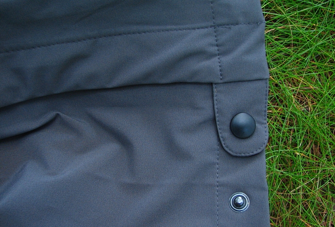 Spodní část nohavic je vyřešena opět jednoduchým způsobem včetně dvou možností nastavení šířky nohavic.