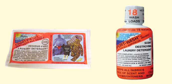 Prací prostředek Atsko Sport-Wash 30, který pomáhá obnovovat vodoodpudivost a prodyšnost materiálu.