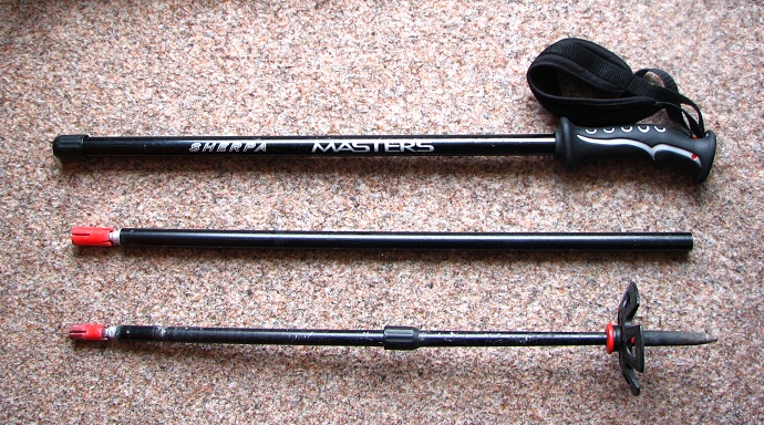 Pohled na složenou teleskopickou holi Masters Sherpa.