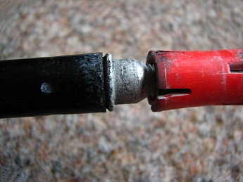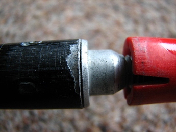 Čekáte konečně na praktické zkušenosti? Tady jsou... Oba modely holí Masters Sherpa používáme velmi intenzivně již 4 roky (turistika, VHT, horolezectví...), všude nám byly výbornými pomocníky. A jaká je situace dnes? Dva kusy holí se protáčí, tzn. že nejdou utáhnout. Zatím jsme situaci neřešili náhradním SBS systémem, u jedné hole to pravděpodobně půjde, u druhé už je to horší (vz. obrázky dole). Došlo totiž k uvolnění pevně spojeného konce dílu a hliníkového závitu, který je součástí SBS (obr. vpravo dole). Hůl se tím pádem sama protáčí a ani výměna SBS by jí nepomohla.