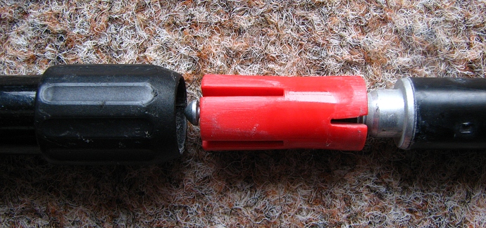 I přes uvedené nedostatky a problémy hodnotíme hole průměrně (3 tlapky). Během 4-letého užívání došlo několikrát k "protočení" hole, ovšem tento problém se obecně u holí Masters vyskytuje (zkušenosti i mých známých s jinými modely), ale jde lehce odstranit. Holi vysuneme až téměř ven (jako na obrázích nahoře) a červenou vložku mírně utáhneme (aby se vešla zpátky do horního dílu). Poté holi utáhneme a SBS by se mělo opět obnovit. Celkově nás však hole nezklamaly a 4-leté intenzivní používání hodnotíme jako kladné. Pokud se nám podaří vyřešit problém (znázorněný na obrázku), rádi se s Vámi podělíme o další praktické zkušenosti. Na závěr ještě přehled hlavních kladů a záporů teleskopických holí Masters Sherpa.