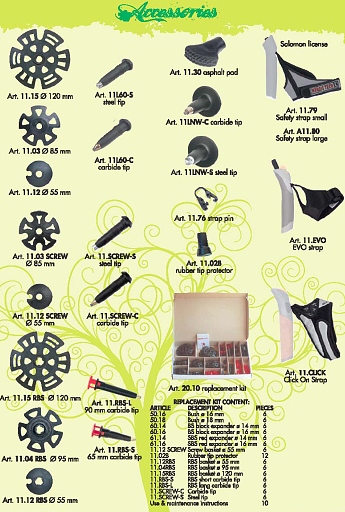 Technická specifikace holí Sherpa (katalog 2010). Vpravo je seznam dokoupitelného příslušenství holí Masters.